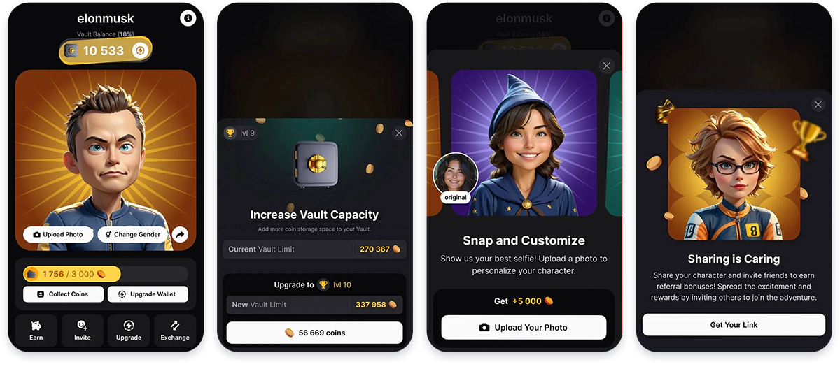 Your wallet balance increases automatically through farming, which progresses at a defined rate. To boost this rate, improve your character’s attributes and transfer coins from your Wallet to your Vault regularly to continue accumulating rewards. Expanding your Wallet and Vault’s capacities allows for increased storage.